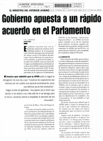 El reportaje trata sobre el apoyo hacia la propuesta de DDHH del gobierno de Ricardo Lagos y el posible rechazo proveniente desde la Agrupación de Familiares de Detenidos Desaparecidos por el tema de la Ley de Amnistía. Se señalan las esperanza de poder dialogar con esta organización, demostrando lo positivo que contiene esta propuesta para alcanzar la justicia. Se muestra lo que contiene el proyecto desde lo legislativo, la Comisión sobre la tortura, el tema de las reparaciones y la creación de un Instituto Nacional de Derechos Humanos y Libertades Públicas.